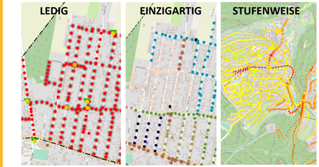 ein Netzwerk aus Laternen und deren Verbindungen zu den Schränken