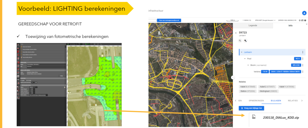 Nu komt de eigenlijke fase van de verlichtingsberekeningen. Op basis van de verzamelde gegevens over straatprofielen en orthofotokaart- of straatbeeldgegevens kan de ontwerper een straatmodel toewijzen en de gegevens in het programma invoeren om de meest geschikte flux en fotometrische vorm van de verlichtingsarmatuur te berekenen en te selecteren.